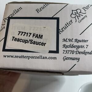 The Beatrix Potter Childs Cup and Saucer by Reutter Porzellan Germany is a charming set featuring a Peter Rabbit design, perfect for a baby shower or child's tea party. Made of porcelain with a colorful Beatrix Potter pattern, this cup and saucer set was manufactured in 2005. A delightful addition to any collection of dinnerware or serveware, this set brings a touch of nostalgia and whimsy to your kitchen or dining room.