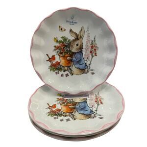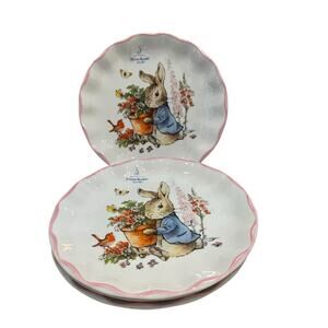 Beatrix Potter Peter Rabbit Easter Salad Plates Set of 4 Scalloped Pink Trim NEW