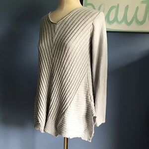 Beatrix OST Gray Ribbed Knit Long Sleeve V-Neck Tunic Sweater Top - Size Small. Cotton/Rayon blend. Pre-loved in excellent condition. See photos for details. Original stock photo of top include for reference also.