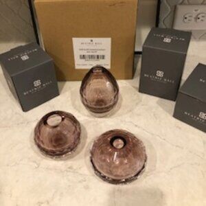 Beatriz Ball - Faceted Glass Bud Vases - Amethyst - NEW - Set of 3: Teardrop 3.5 in dia X 4.75 in high; Round 3.5 in dia X 3.5 in high; and Short 4.5 in dia X 2 in high - NEW w/ original packaging