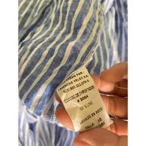 Beatriz Camacho Womens Jumpsuit Size 8 Blue Striped Linen Wide Leg Coastal