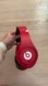 Beats by Dr. Dre headphones in vibrant red. Sleek and stylish design. In great condition some wear shown in photos (small tiny paint spot missing on a corner and the top of the headband is separating a little. Comes with two cords not shown.