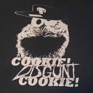 Anyway its a supersoft well-worn tour tee shirt with Cookie Monster & Cookie! Cookie! on it. Size XL, measures unstretched