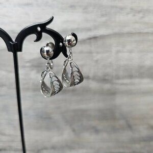 Beau 925 Sterling Silver Vintage Drop Dangle Screw Post Earrings VTG