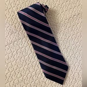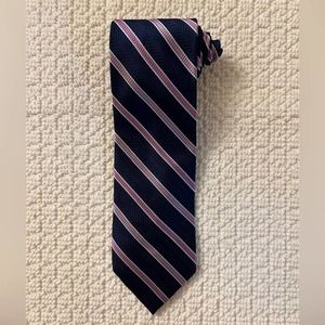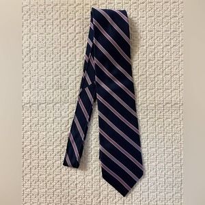Gently used Beau Brummel Soho neck tie. Blue with diagonal pink and white stripes, 100 percent silk, handmade. No known flaws, please see pics for details and flat lay measurements. Smoke and pet free home, fast shipping. Thanks!