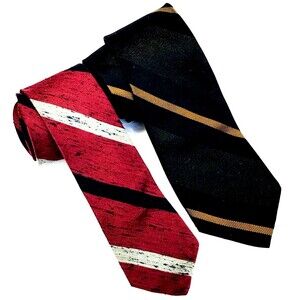 Beau Brummell Ties 2 Vtg Slim Skinny Striped Silk Rayon Red Brown Vegas Preppy