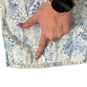Beau Dawson Blue White Floral Linen Blend Wide Leg Tie Front Pants size L 10-12