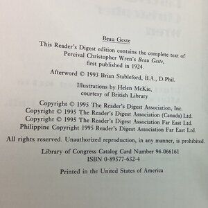 Beau Geste By Percival Christopher Wren Readers Digest Hardcover Edition 1995