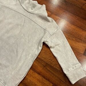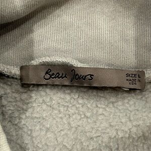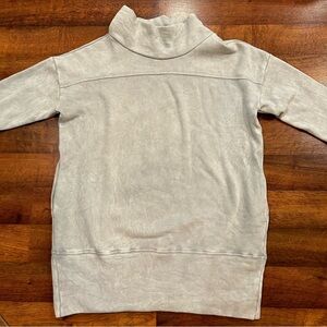 Great condition- no holes or stains. Beau Jours Women’s Cowl Neck Sweatshirt Pockets Fleece Lined Size Large Light Gray. Material is so soft and cozy. Extra long to pair with leggings.