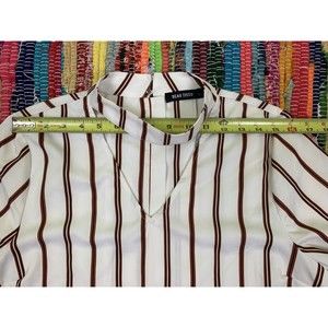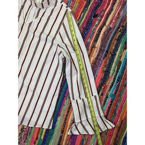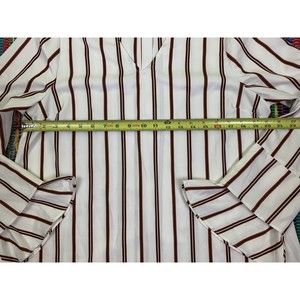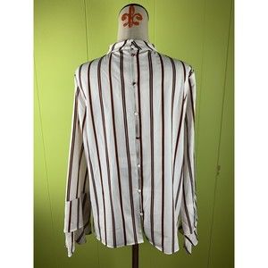 Beau Tissu V-Neck Back Button Striped Long Sleeve Size L Large Women's