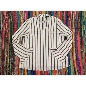Beau Tissu V-Neck Back Button Striped Long Sleeve Size L Large Women's.