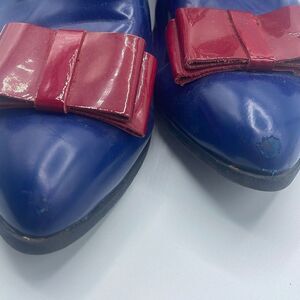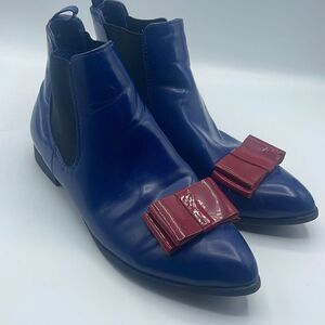 Beau+Ashe Women's Chelsea Boots Slip On Shoes Red Bow Almond Toe Blue Size 7