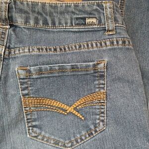 This is a pair of basic blue jeans by Beau. There is some embroidery on the back pockets and the brand is stamped into the hardware.