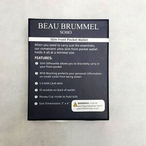 Beau Brummel Soho Money Clip Slim Pocket Wallet New