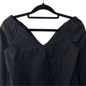 Beaufille Black Off Shoulder Chic Feminine Linen Blend V Neck Bia Top - 2 $325