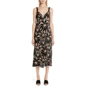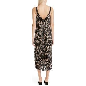 Shimmering metallic embroidery illuminates the lacy, velvet blooms of this showstopping slipdress that swishes softly with every step. Plunging Vs in front and back reveal tantalizing glimpses of skin. New with tags! Size 6 Hidden back-zip closure Plunging V-neckline Sleeveless Lined to mid-thigh 100% polyester Dry clean Made in Italy Measurements are approximate and taken with item laying flat: length 48", underarm to underarm 16.5" (33"), waist 17" (34"), hip 20" (40")