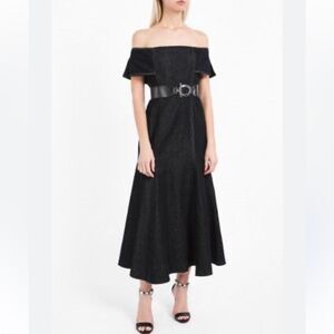 Beaufille Lambda Maxi Black Dress Off The Shoulder Denim Size 4