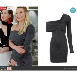 Beaufille Pinstripe One Sleeve Canopy Dress Size 4 Navy Linen Blend Stretch