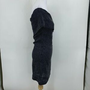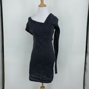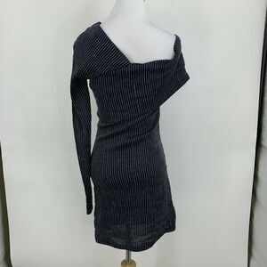 Beaufille Pinstripe One Sleeve Canopy Dress Size 4 Navy Linen Blend Stretch