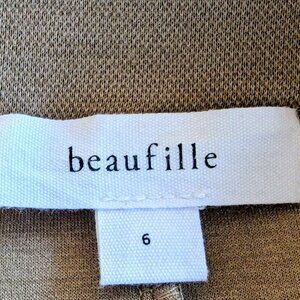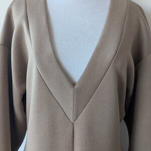 Beautiful thick tan midi dress by beaufille. Deep V neck, balloon sleeves. Size US 6, but fits more like an 8.