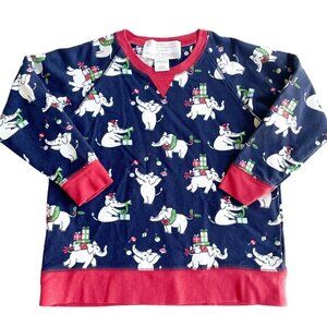 Beaufort Bonnet Company for Little Classics on Clay Christmas Elephant - Sz 7. In excellent gently used condition. Cassidy Comfy Crewneck. Sweatshirt style, but not as heavy as a sweatshirt, soft material. Elephants, Christmas, presents, gifts, holiday, winter, sweatshirt, long sleeve shirt.