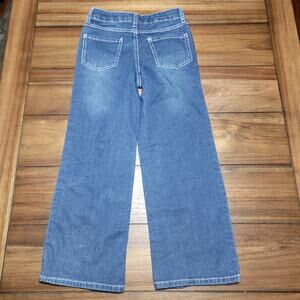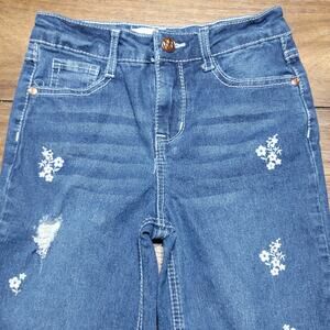 Beautees Girls Denim Wide Leg Jeans w/ White Embroidered Flowers - Size 7