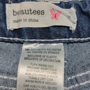 Beautees Girls Denim Wide Leg Jeans w/ White Embroidered Flowers - Size 7. Excellent condition. Comes from a smoke free home.