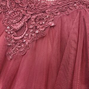 The Beautees Girls Dress is a charming fit and flare style dress designed for little princesses. Made from polyester material with a tulle fabric type, the dress features a lovely pink color with a lace design, perfect for a party occasion. The dress has a sleeveless design with a round neck and a zip closure for easy wear. With accents of ruffles and lace.