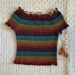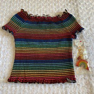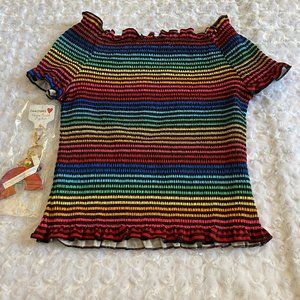 Beautees Girls Rainbow Colors Stretch Short Sleeve Top-L