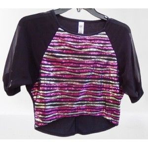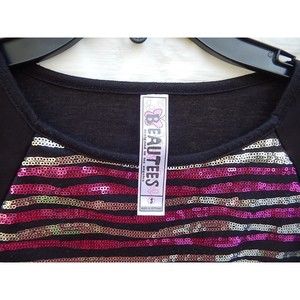 Beautees Girls T-Shirt Top Sz S 3/4 Sleeve High-Low Round Neck Relaxed Sequin