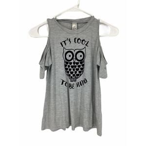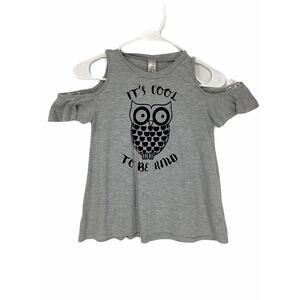 Beautees Girl's Gray Cold Shoulder Graphic T-Shirt Kid's Youth Size Large/14