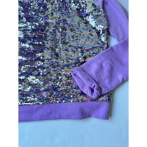 Add a touch of sparkle to your wardrobe with this gorgeous Beautees sequin sweater! The beautiful purple fabric is adorned with dazzling silver sequins, making it perfect for adding a pop of fun to any outfit.