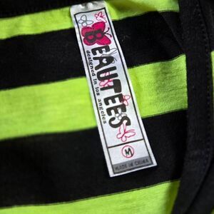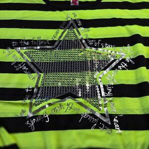 Beautees sequin star stripped Girl shirt M8. Neon.
