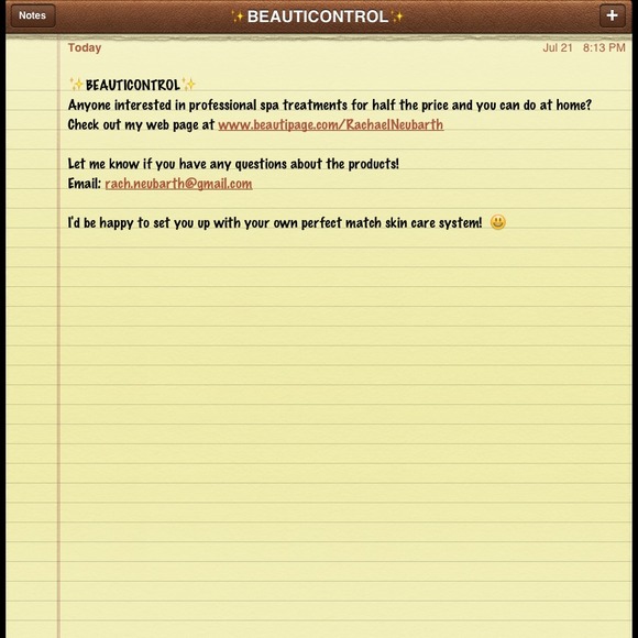 Amazing skin care and make up lines! Customized for your individual skin type! Email me if you're interested and check out my beautipage! Email me at rach.neubarth@gmail.com to purchase some of our amazing products!