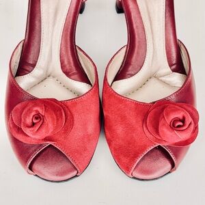 BeautiFeel Peep Toe Sling Back Flower Rosette Heels Red