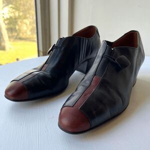 BeautiFeel Black & Brown Leather Block Heel Shoes Size 40 Comfort Style
