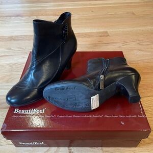 Beautifeel Chelsea NIB black leather booties with leather bead closure