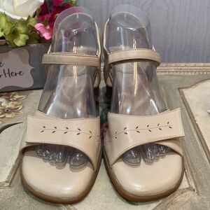 Beautifeel Leather Adjustable Strap Comfort Sandals Stacked Heels Cream EU Sz 41