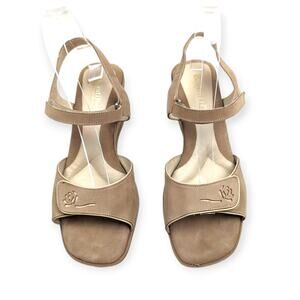 Beautifeel Tan Suede Wedge Slingback Square Toe Comfort Sandals Size 40