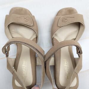 Beautifeel Tan Suede Wedge Slingback Square Toe Comfort Sandals Size 40 | 9