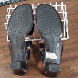 Beautifeel's Begonia sandal offers strappy good looks and extraordinary comfort. Open bands of patent & smooth leather wrap over the foot in this open back style. The covered dress heel is cut wide for added stability, and the leather-topped padded footbed is simply divine.