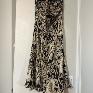 Beautiful 100% silk halter neck printed dress. Black, tan and cream color.