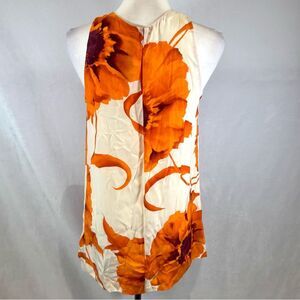 Beautiful 100% silk white and burnt orange floral pleated halter top size small