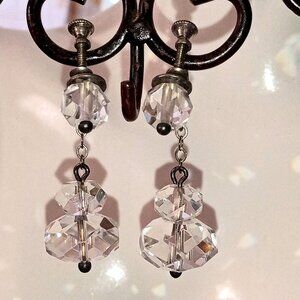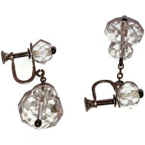 Be a part of history with these dazzling vintage screw back earrings straight from the roaring 20s! Featuring beautiful faceted crystals and sterling silver from the Art Deco era, these earrings are timeless and sure to make a statement. Don't worry - we'll polish them up if you'd like! A great heirloom to pass down for generations.