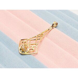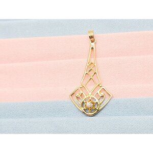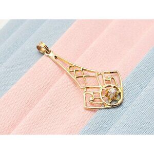 Beautiful 10K Karat Solid Yellow Gold Designer Art Deco Diamond Pendant Charm