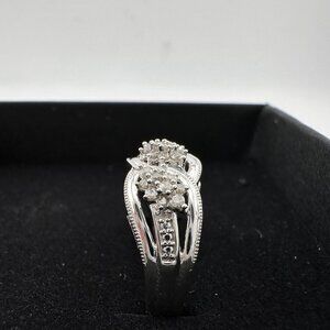 One stunning diamond ring with 3 clusters of diamonds. Swirls of textured sterling silver through them. Pretty ring. .5 carats of natural diamonds total carat weight.
