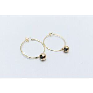 Beautiful 14K Karat Solid Yellow Gold Designer Black Diamond Stud Hoop Earrings