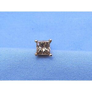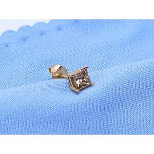 Beautiful 14K Solid Yellow Gold Single Princess Cut Brown Diamond Stud Earring