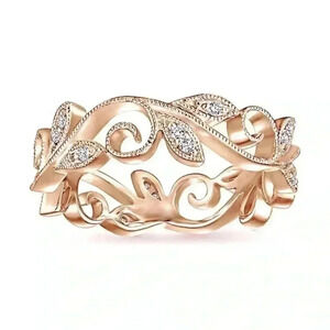Beautiful 14k Rose Gold Over Silver White Sapphire Ivy Band