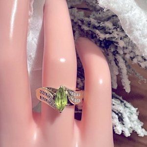 Beautiful 14k Solid Yellow Gold 1ct tw Real Diamonds 2ct Natural Peridot Ring